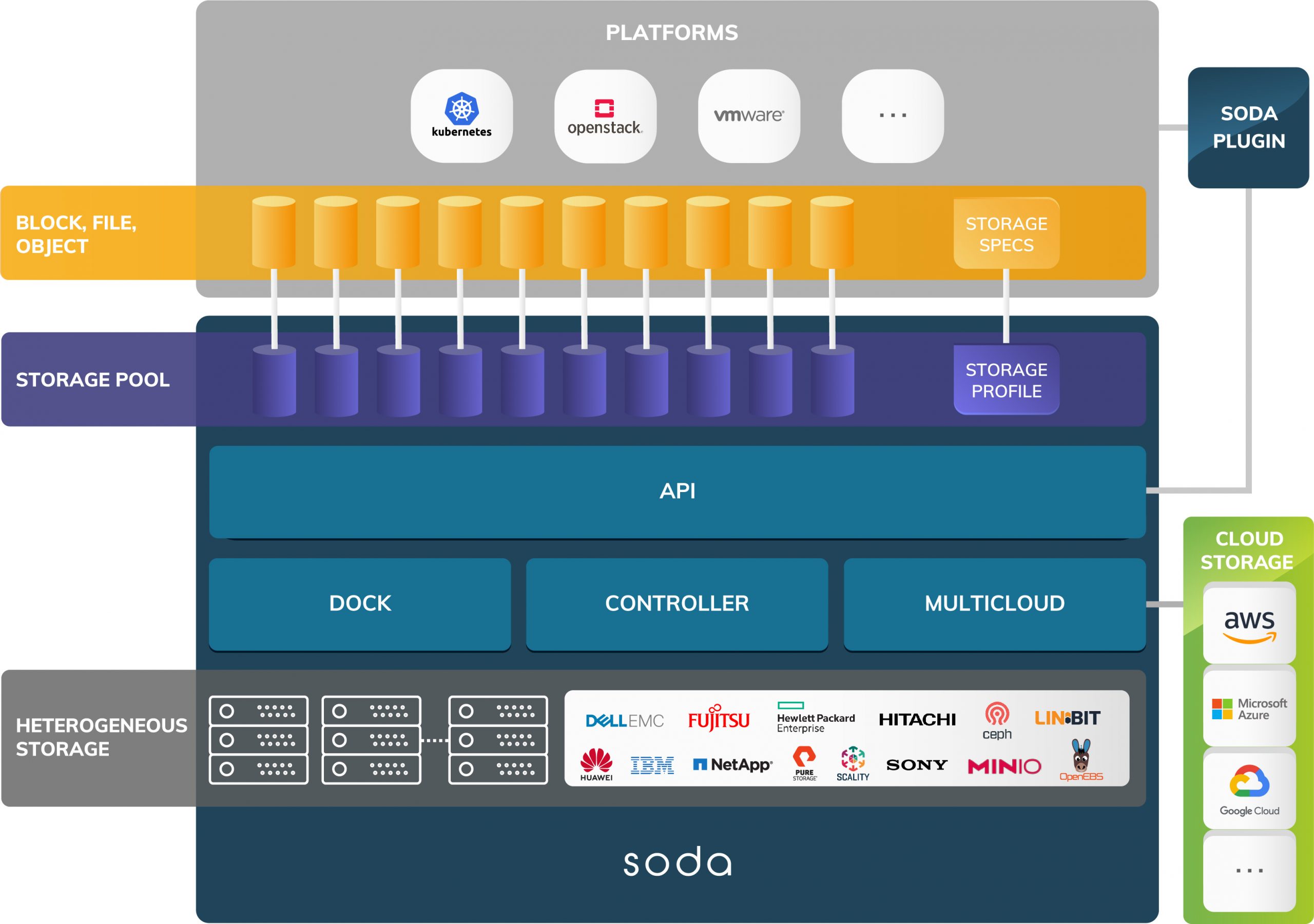 SODA (SODA Open Data Autonomy) Architecture is getting evolved to realize a challenging goal of building a unified framework for data and storage management. It connects the application platforms and solutions to the backend storages seamlessly, be it on prem or cloud through unified API layer. This enables the application platforms to focus to build more valuable use cases rather than worrying about managing the underlying storage backends and data management.